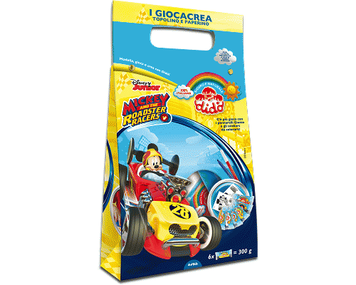 Con Dido GiocaCrea Mickey and the Roadster Racer, la creativita e in pista.Il piu classico dei personaggi Disney e una garanzia per il divertimento Topolino torna in pista nella linea Giocacrea! All interno della confezione, 6 salsicciotti, 3 turbocolor