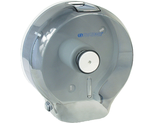 Dispencer per rotoli di carta igienica mini jumbo. Corredato di chiave e viti di fissaggio a muro.