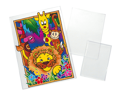 Lastre in plastica altamente trasparente lavorate a rilievo ad effetto vetro cattedrale o liscio. Adatte per essere con i colori per vetro. Formato 20x30cm.